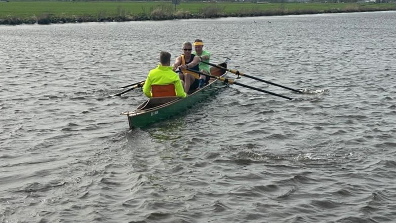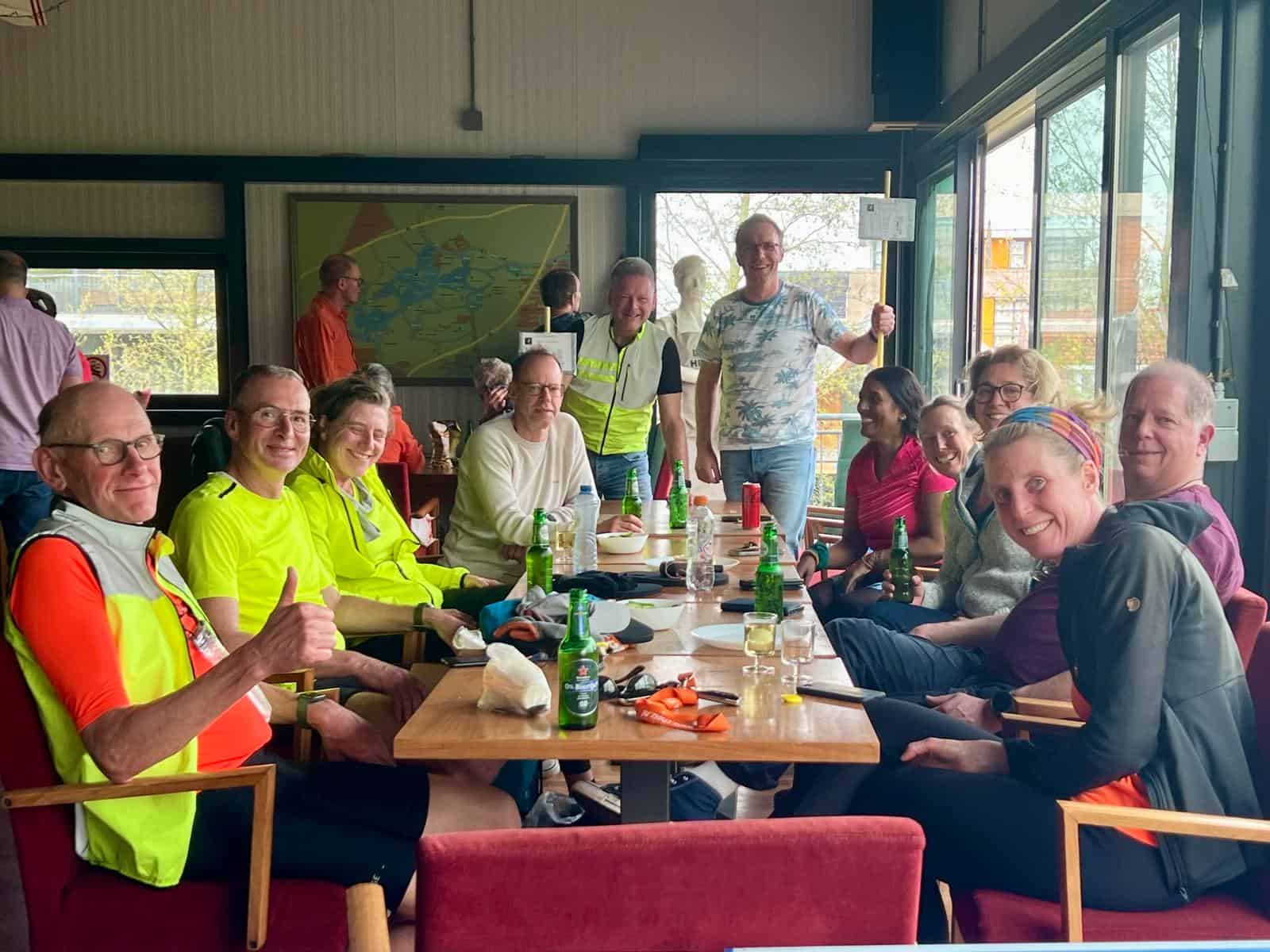 De tweede plaats was voor het gastteam, dat na precies 9 uur wist te finishen. Ook heel knap, omdat alle leden van dit sportieve team de 90 km volledig op spierkracht hebben volbracht. Na iedere roei-etappe sprongen ze energiek op de fiets om naar het volgende wisselpunt te koersen. Vastberaden om deze tocht zo snel en energie neutraal mogelijk te volbrengen.