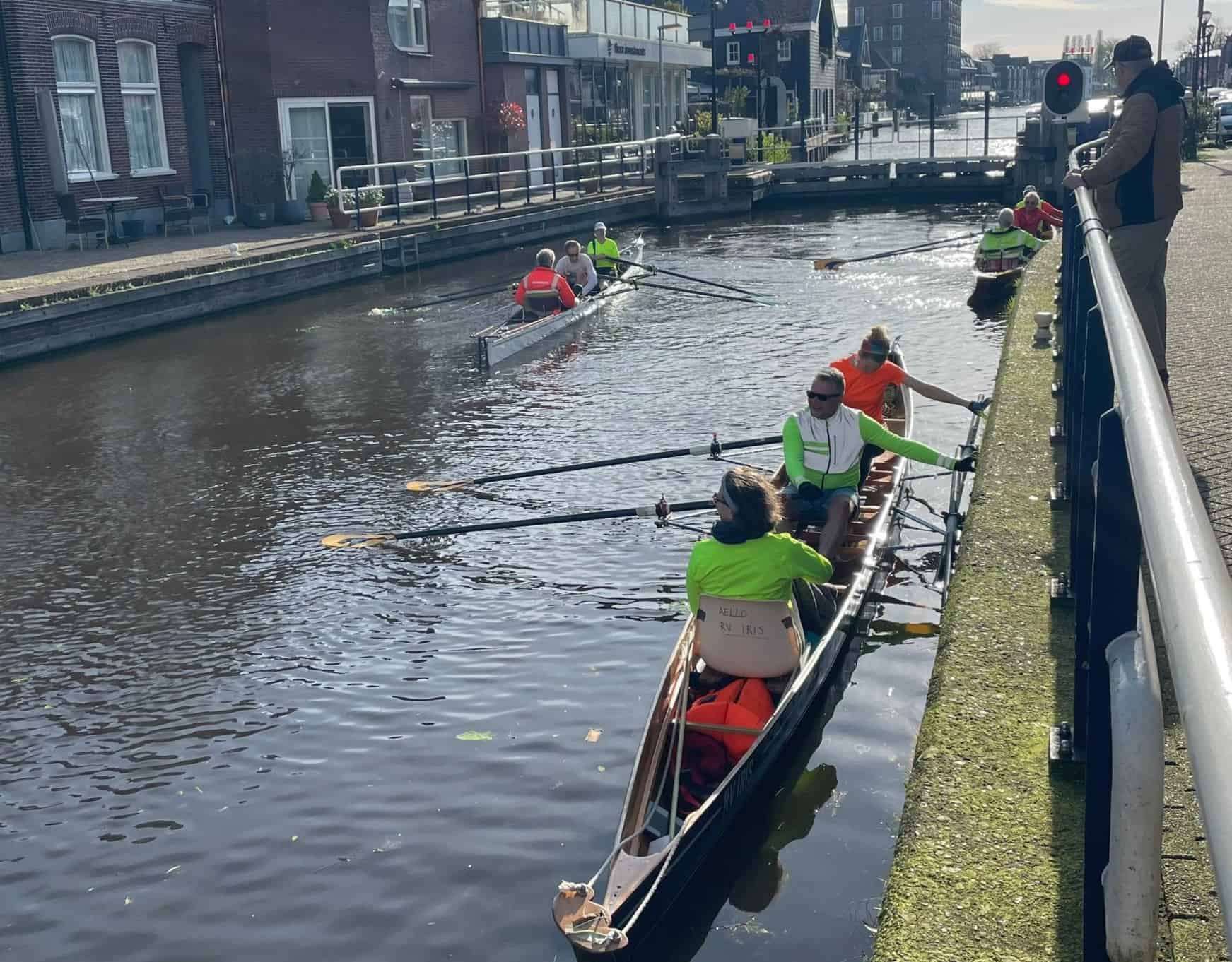 Omdat de Slikkerdammersluis gestremd was, ging de tocht dit jaar via Woerden en Bodegraven ipv via Nieuwkoop. Ook leuk! In Woerden werden we heel gastvrij ontvangen bij roeivereniging De Krom. En ook deze nieuwe route voerde door mooie natuur en over slingerende wateren.