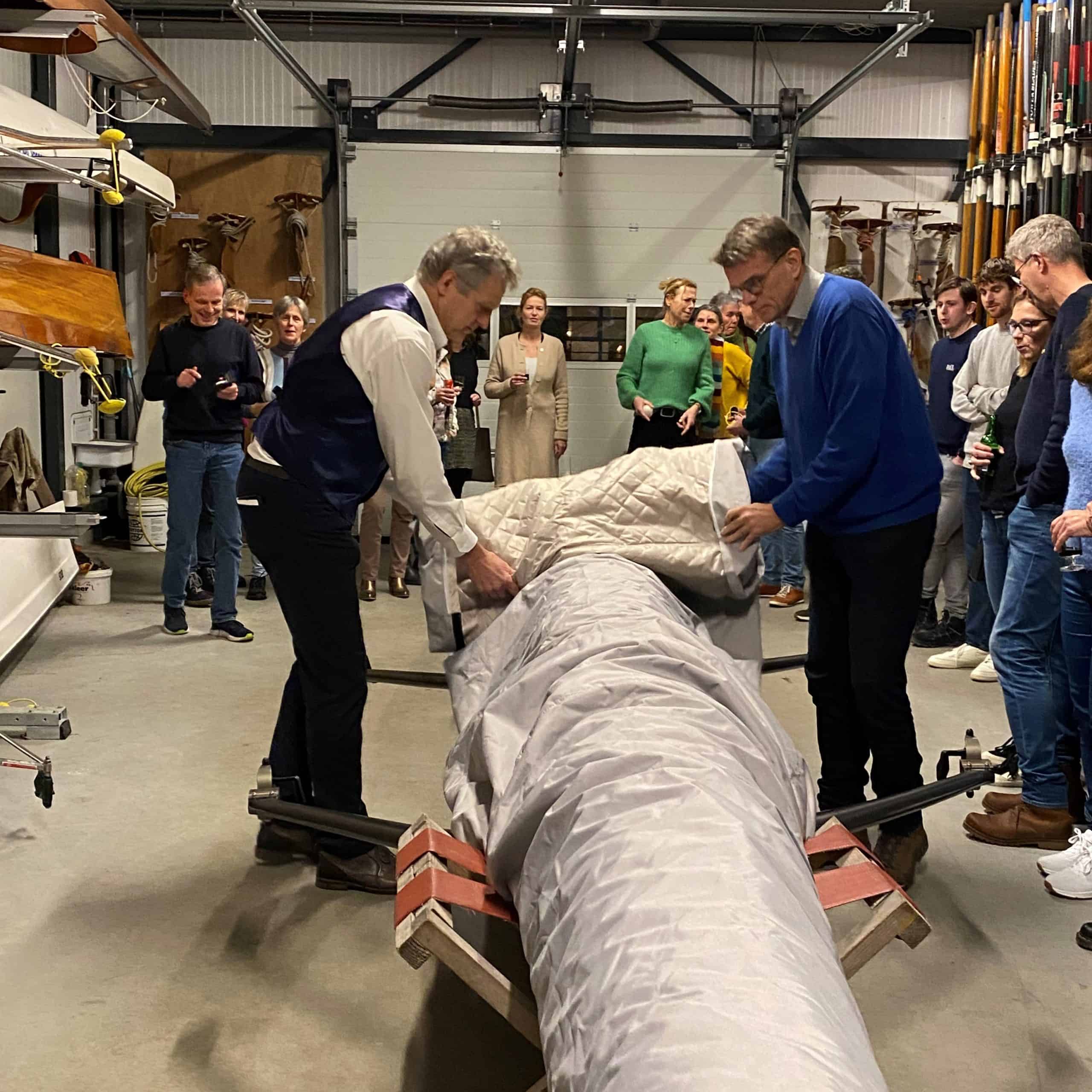 De Nieuwjaarsborrel op vrijdag 12 januari, vier dagen voor de vijftiende verjaardag van RV Iris, was een mooie start van het derde lustrumjaar. Na de openingsspeech waarin voorzitter Kor een ieder opriep om te werken aan een bloeiende en gastvrije roeivereniging volgde een feestelijke doopplechtigheid in de loods. Geheel in stijl werden de nieuwste aanwinsten officieel welkom geheten, met “champagne” uit de Greveling overgoten en behouden vaart gewenst.