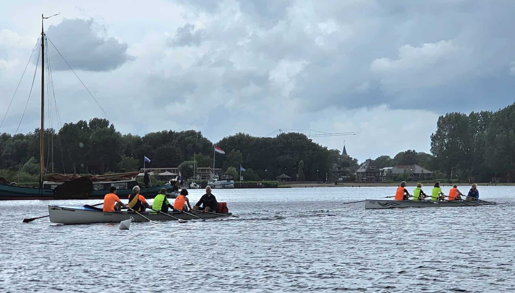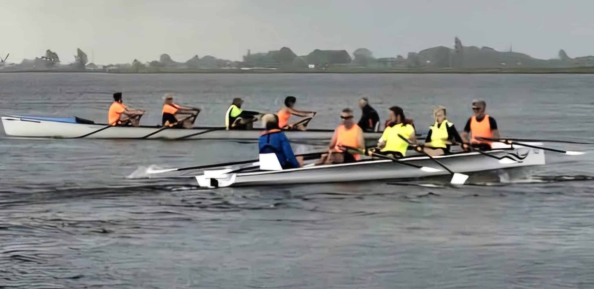 Omdat de Coastal wedstrijden bij Scheveningen dit weekend (7-7) niet doorgingen vanwege golfslag en wind had Jan van Griethuizen een alternatief georganiseerd op de Kaag. Hij had een parcourtje uitgezet van ca 1,5 km rond 2 boeitjes op het Joppe en zowel RV-de Kaag als RV-Iris zouden met hun boot en roeiers komen. Deelgenomen kon worden, bij Iris, door de mensen die hun Coastal brevet gehaald hadden. Doel was lekker onderling sparren in verschillende team samenstellingen en in verschillende boten, gewoon plezier hebben en een andere boot en roeiers leren kennen.