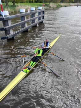 Na in 2022 de Oude IJsselrace te hebben geskiffd (Bob, Joost en Kor) was het dit jaar de dubbel twee met Ton op slag en Kor op boeg. Met roeivereniging Rijnland hadden we een overeenstemming