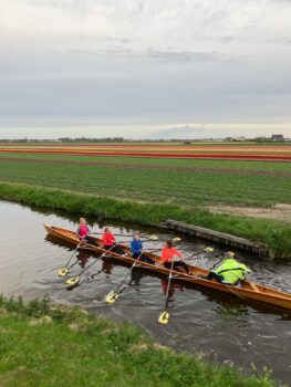 Guus, Kor, Arthur en Sophie hebben hieronder ook hun persoonlijke ervaringen gedeeld van de Ringvaart Regatta, hun uitdagende 100 kilometer roeien. Dit team is een dubbel vier met roeiers Arthur uit Noordwijk, Bob uit Voorhout, Guus