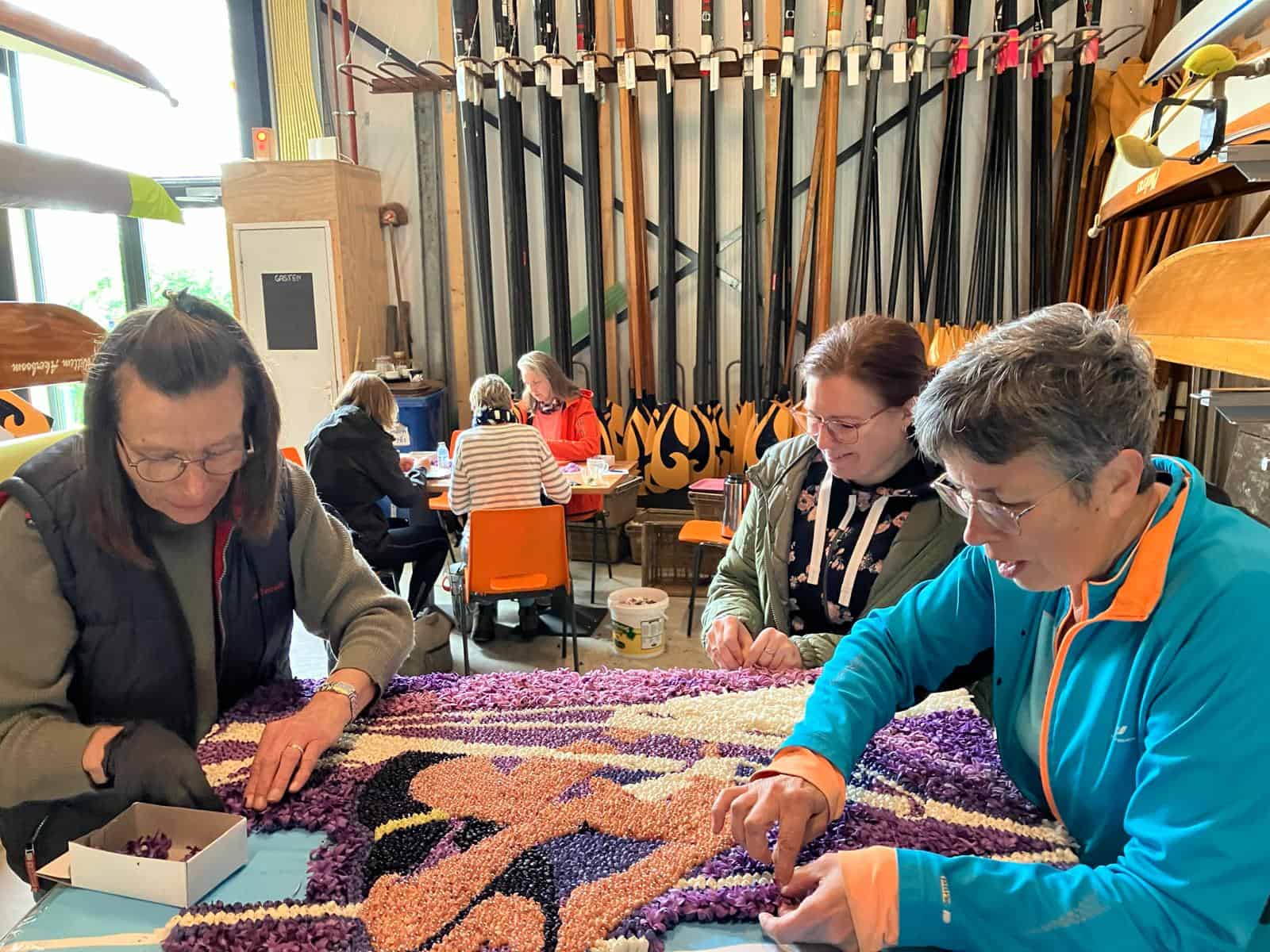Van woensdagavond t/m vrijdagavond is continu gewerkt aan het mozaïek. Meer dan 10.000 bloemen zijn opgeprikt uit wel 11 kratten. Circa 30 enthousiaste helpers hebben hun bijdrage geleverd, van enkele minuten tot meerdere uren. Niet alleen leden, maar ook de kinderen en echtgenoten van … (speciale dank aan Hanneke, Anna en Dick).